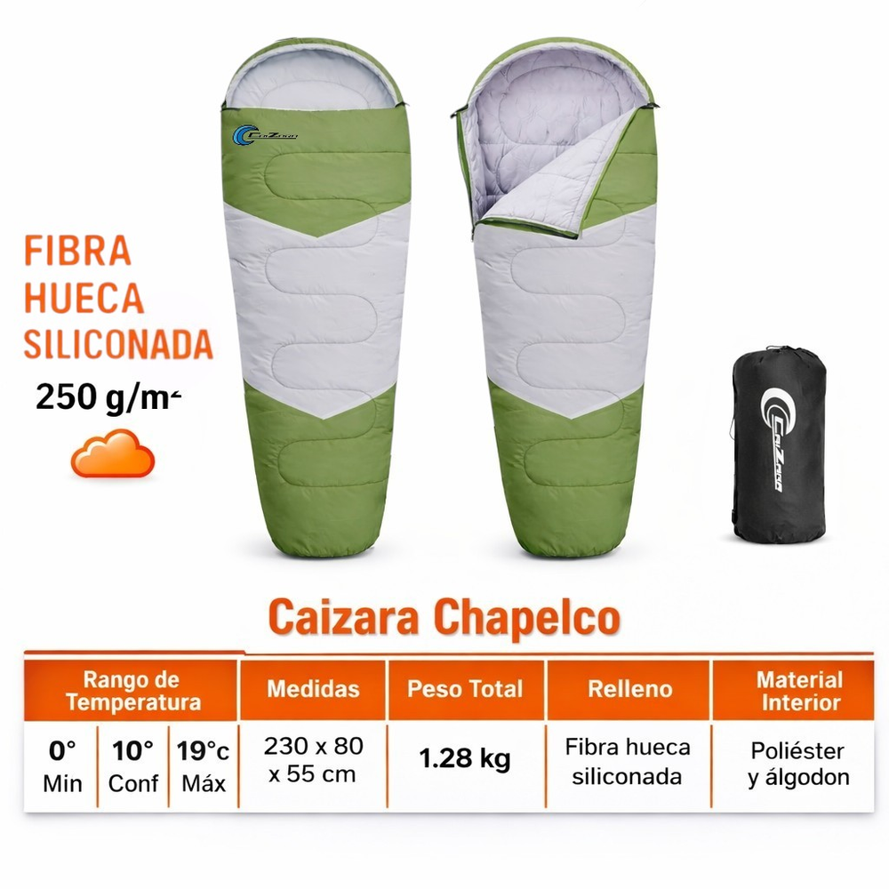 Disfruta de tus noches al aire libre con la Bolsa de Dormir Caizara Chapelco 0°. Ideal para camping y excursiones, esta bolsa combina comodidad y resistencia en un solo producto.