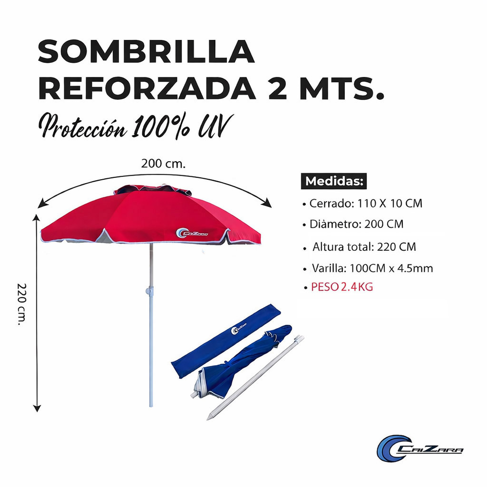 Sombrilla Caizara Super Reforzada 2mts 100% Proteccion Uv