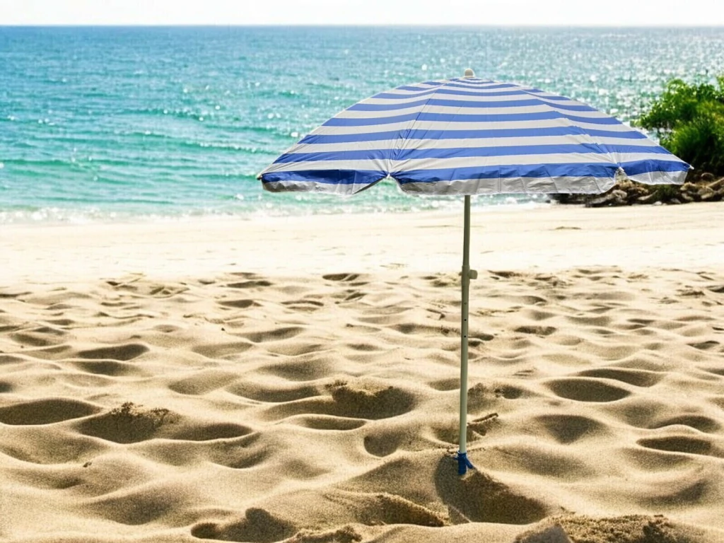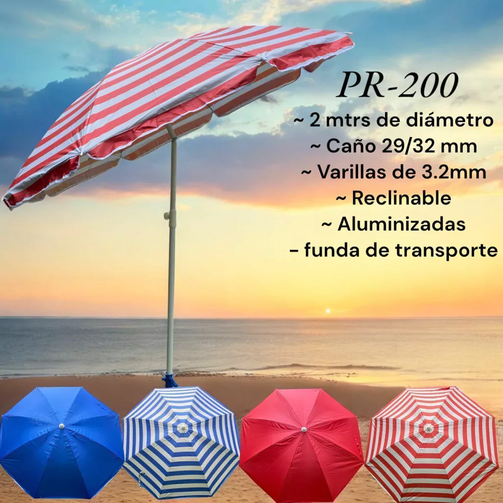 Disfruta del verano con nuestra Sombrilla Reclinable de Playa de 2 metros de diámetro, diseñada para brindarte la mejor protección y comodidad en tus días al sol.