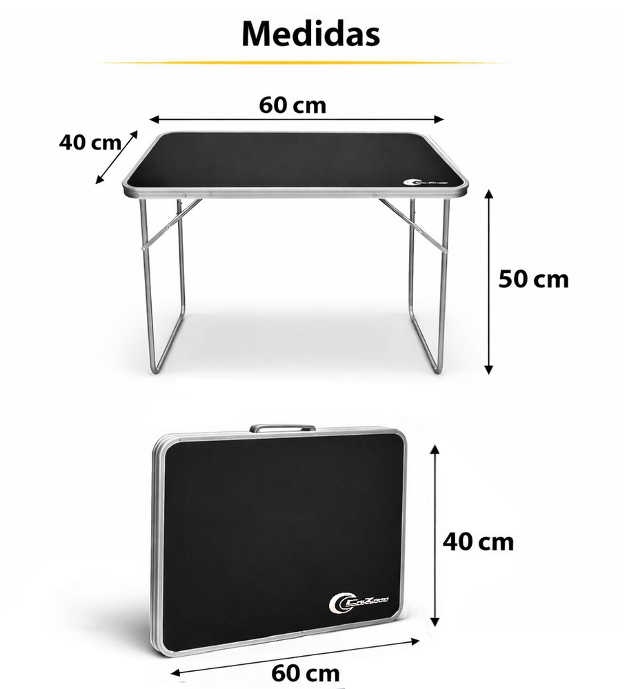 Caracteristicas: -Medidas: 60 x 40 x 25 cm -Capacidad de Resistencia 30 kg -Material: estructura de aluminio, tablero MDF -Fácil apertura -Incluye manija para transporte (No son Valijas) -Peso: 1,5kg