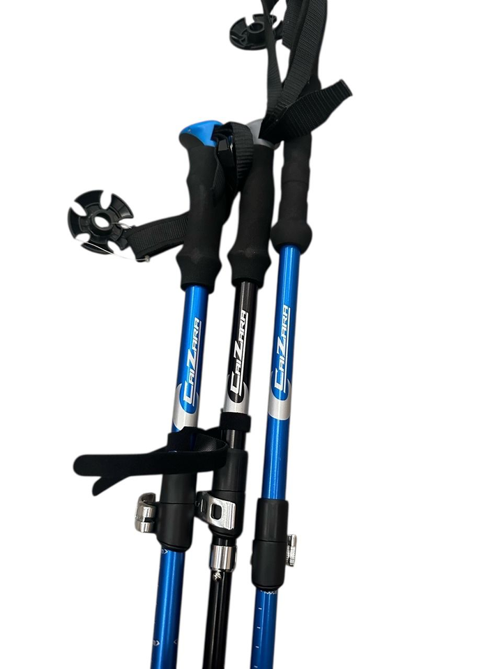 "Bastones de senderismo de aleación de aluminio Duraderos/Ligeros/Portables Aluminio aeroespacial 7075 T6 MEDIDA :62cm HASTA 135cm Peso neto:2359g Cierre exterior resistente 3LS Punta de acero al tungsteno Porta bastones de aluminio + funda protectora de la punta"