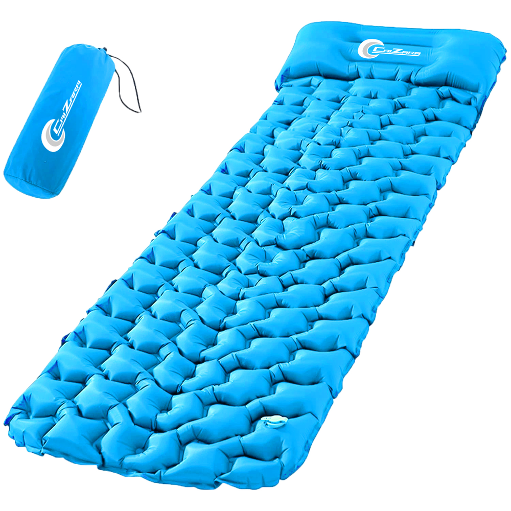 COLCHONETA INFLABLE COMPACTA CAIZARA CL-010 MEDIDAS: 193 X66 X 6cm CERRADA: 24 X 11 CM Material: TPU compuesto de nailon 40D Peso: 750g