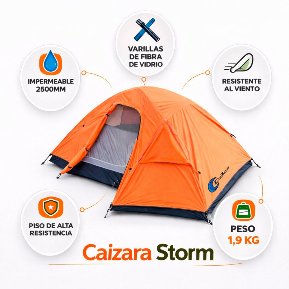 Prepárate para tus aventuras al aire libre con la Carpa 1 Persona Caizara Storm, una opción ideal para montañistas y ciclistas. Esta carpa es reconocida por ser una de las más livianas de su categoría, con un peso de solo 1.9 kg, lo que facilita su transporte en cualquier excursión.