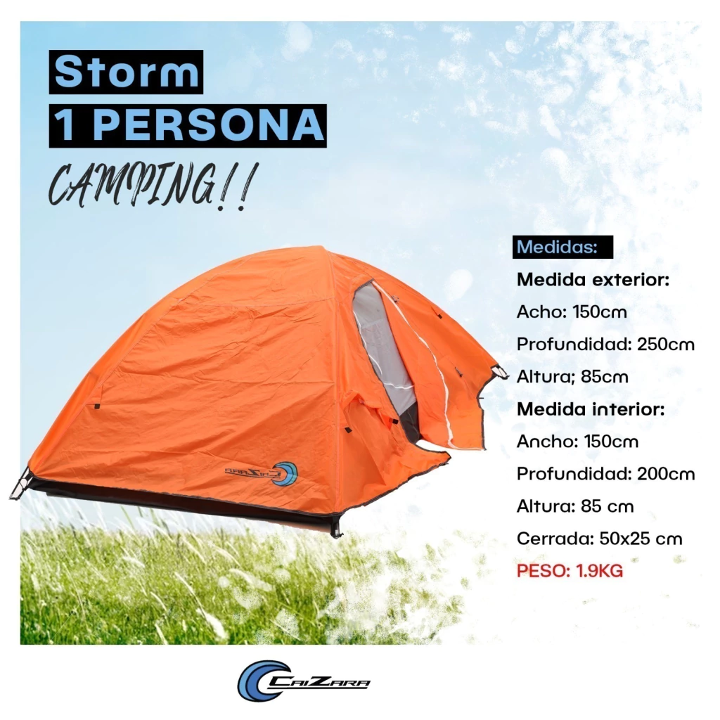 Carpa 1/2 Persona Caizara Storm 1,9kg Montaña Trekking Ciclismo Camping