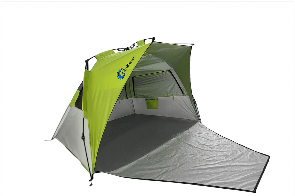 Tamaño: 240 cm x 130 cm x 135 cm Tela: Poliéster 190T con revestimiento de aluminio Material del suelo: Poliéster 190T Grosor de las varillas: Ø 8.5 / 9.5 mm Peso: 2.70 kg Resistencia al agua: PU 400 mm Protección UV: UV50+ Embalaje: Bolsa con cremallera y asa ajustable