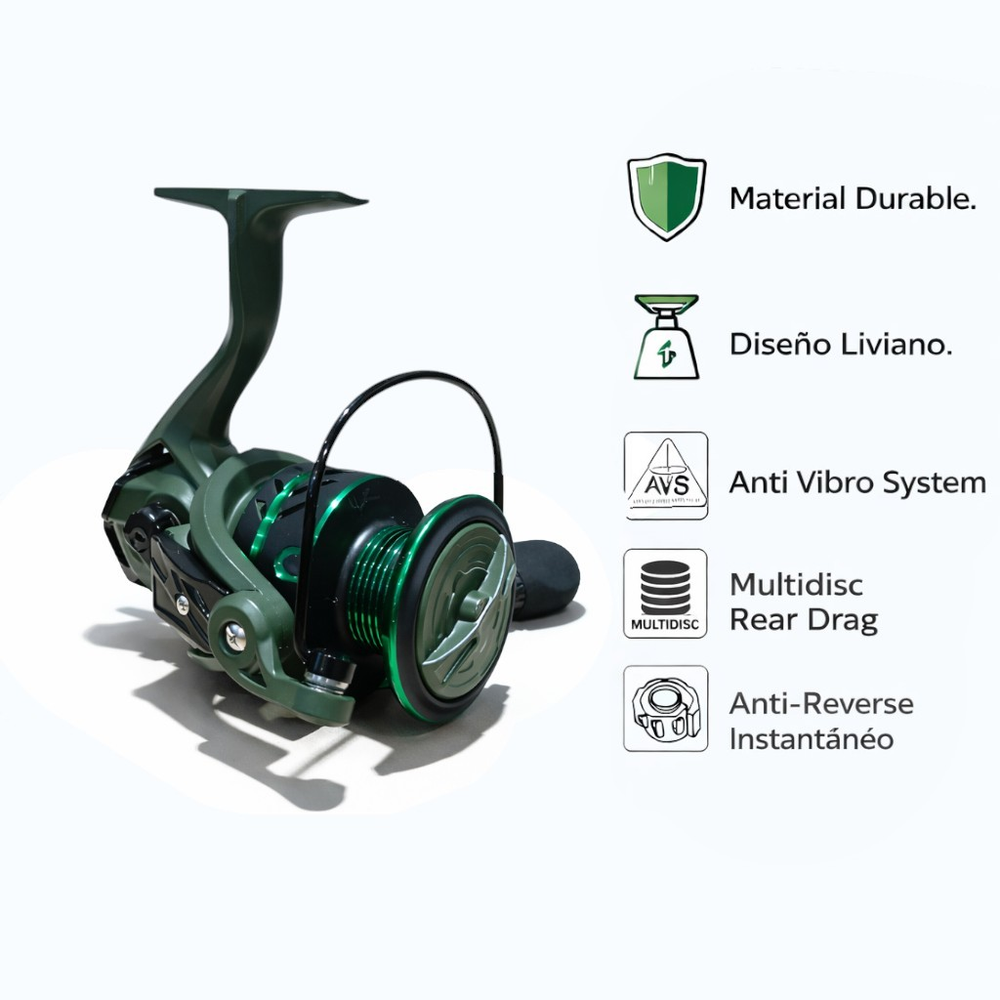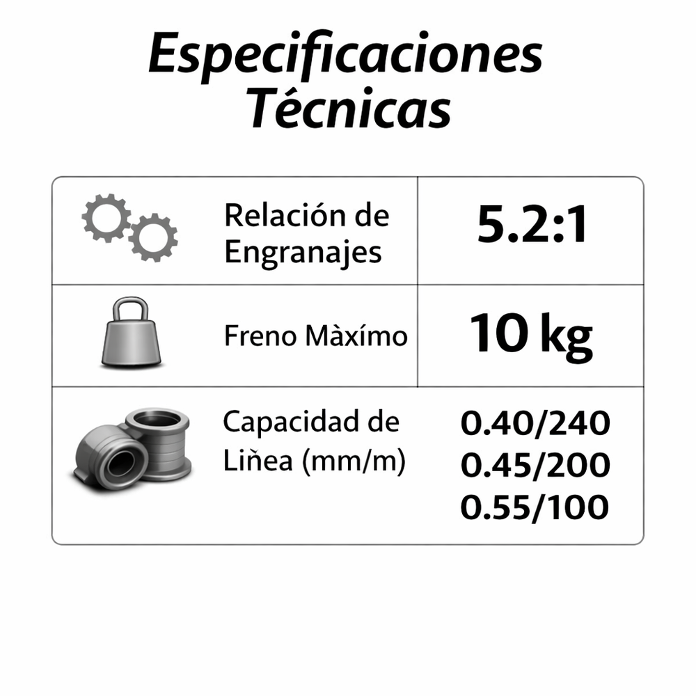 Materiales: Aleación de Acero Inoxidable y Plástico - Carretel de Aluminio