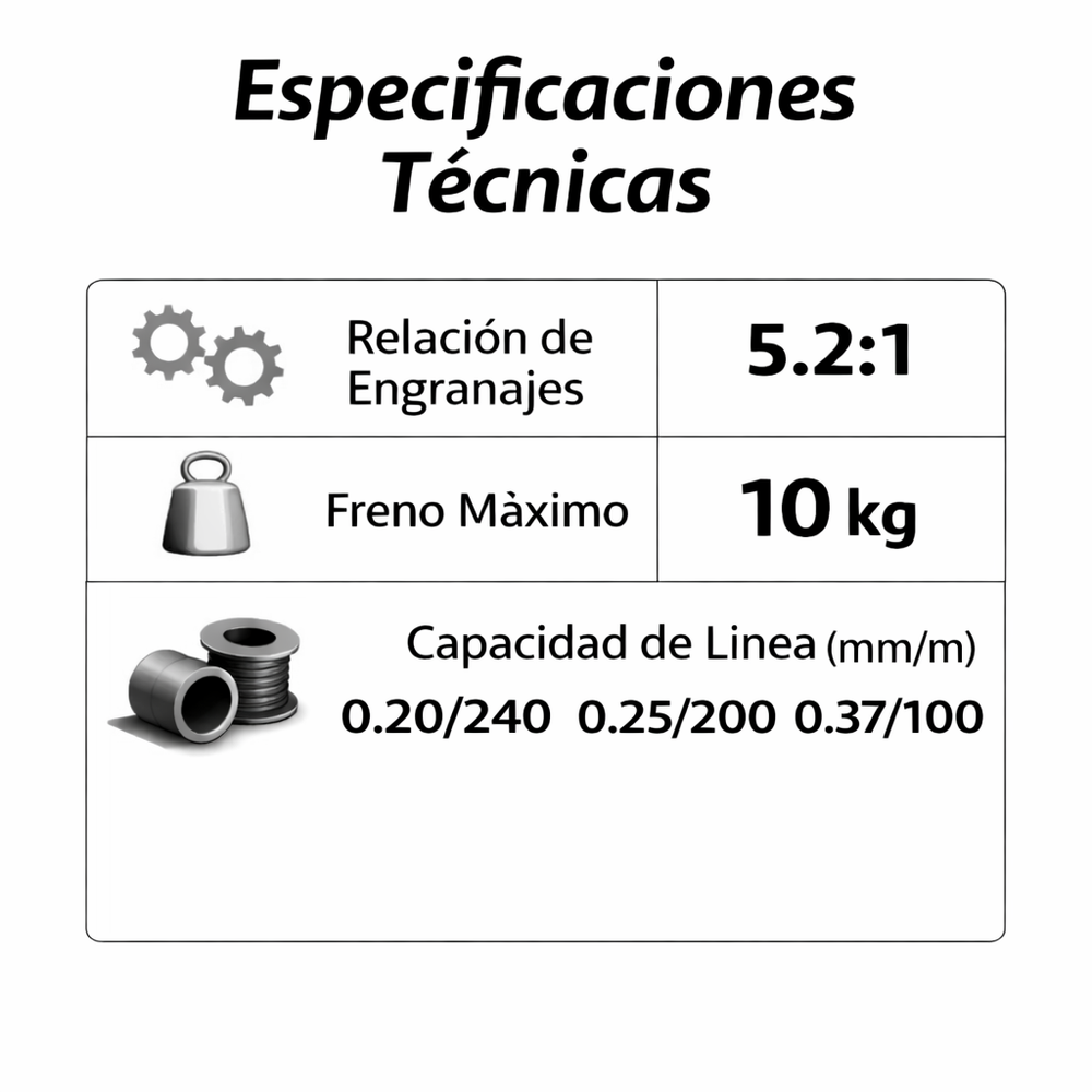 Relación de Transmisión: 5.2:1 Mano: Derecha / Izquierda