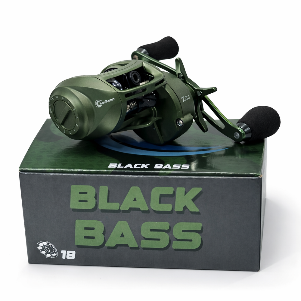 El Reel Rotativo Baitcast Caizara BlackBass es el equipo ideal para quienes buscan potencia, resistencia y precisión en cada lanzamiento.