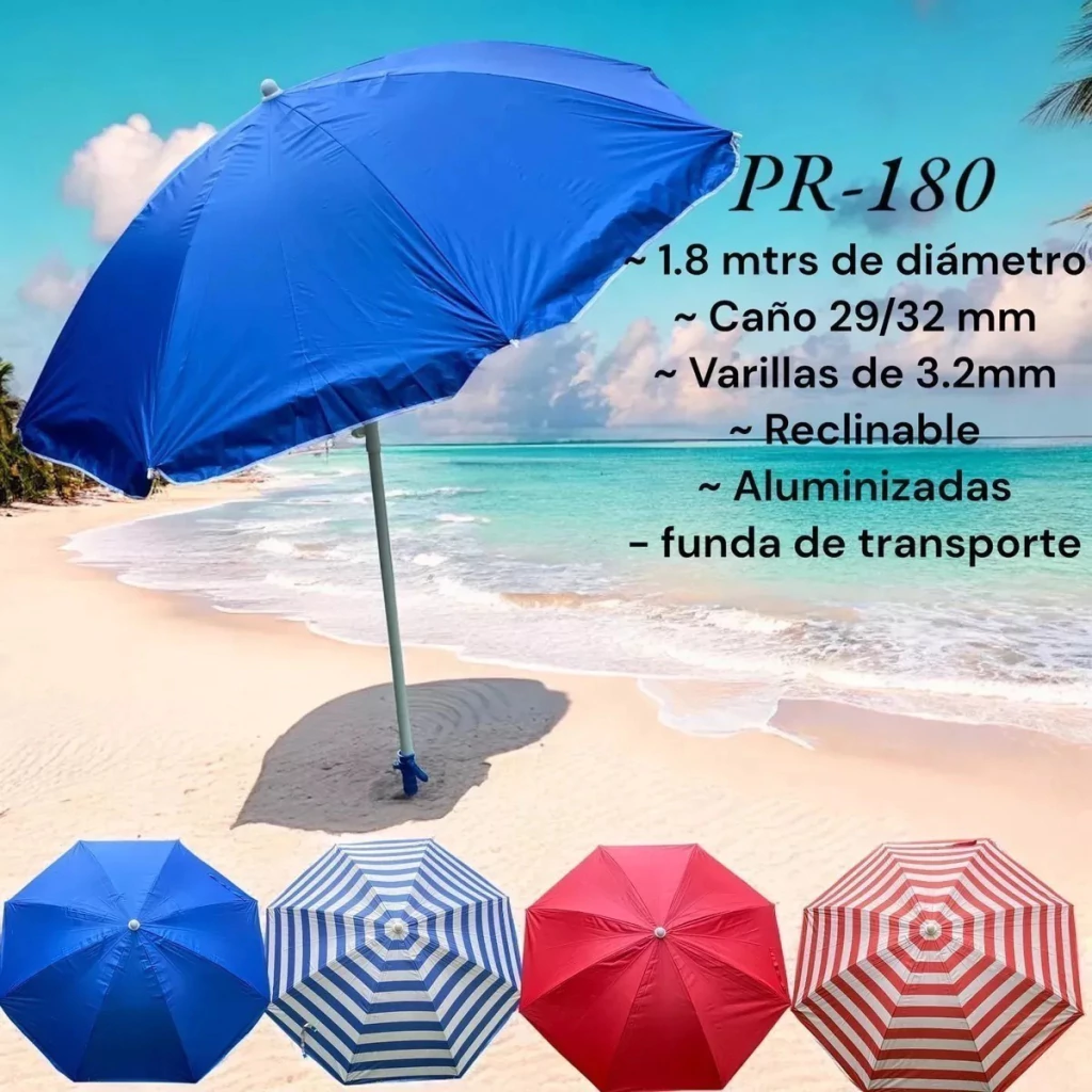 Disfruta del verano con nuestra Sombrilla Reclinable de Playa de 1.80 metros de diámetro, diseñada para brindarte la mejor protección y comodidad en tus días al sol.